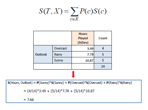 A decision tree is built top-down from a root node and involves partitioning the data into subsets that contain instances with similar values (homogenous). We use standard deviation to calculate the homogeneity of a numerical sample. If the numerical sample is completely homogeneous its standard deviation is zero.