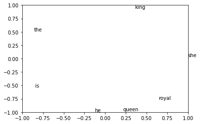 ax.annotate(word, (vectors[word2int[word]][0],vectors[word2int[word]][1] ))